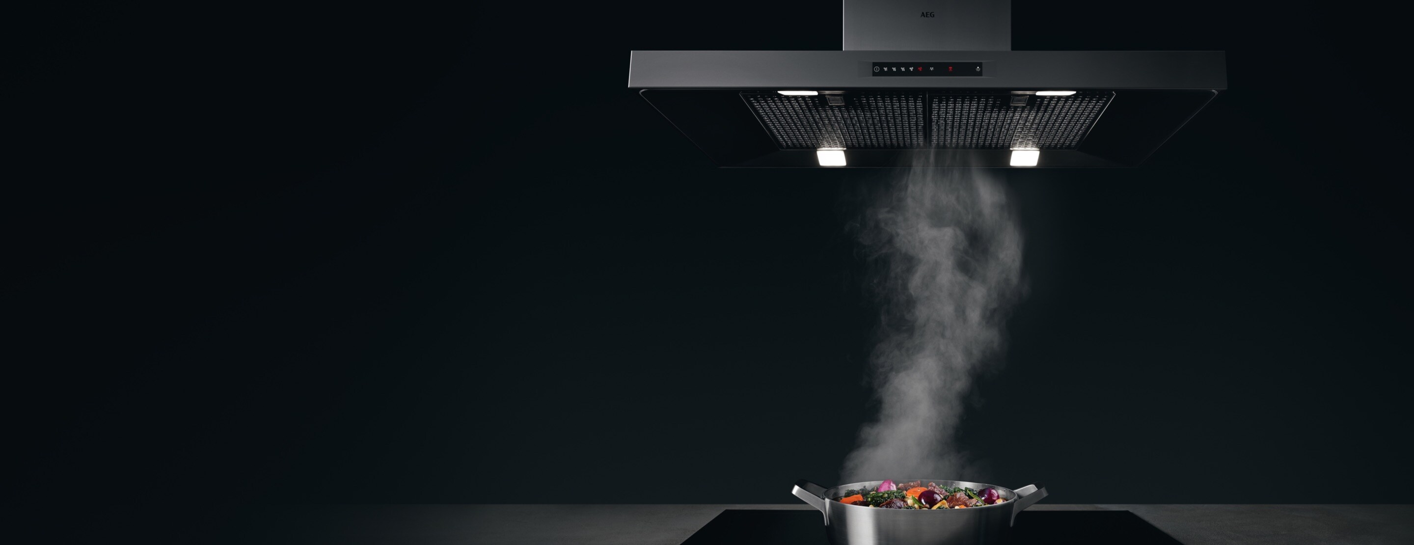 Насолоджуйтесь приготуванням страв без кіптяви, диму та пари. Кухонна витяжка AEG позбавить від випарів і неприємних запахів, буде підтримувати свіжість повітря й затишну атмосферу на кухні.