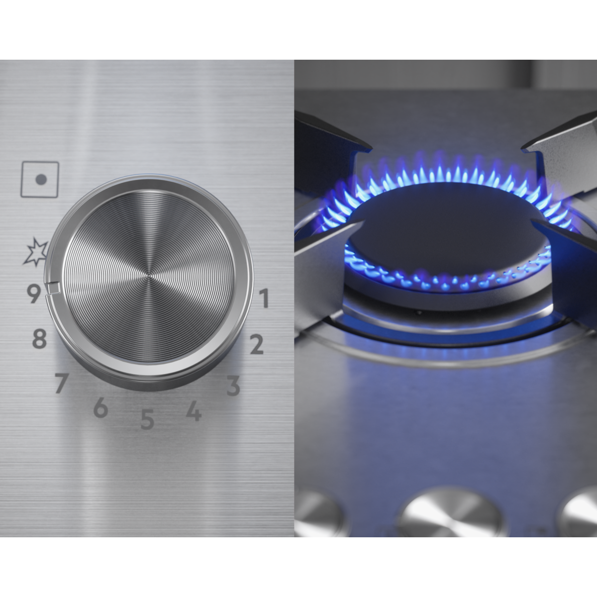 Завдяки швидкому нагріванню матово-чорні конфорки економлять до 20% енергоресурсів. Можна мити в посудомийній машині. Більша ефективність та точність — вертикальні конфорки нагрівають лише посуд.